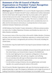 “Statement US Council of Muslim Organizations on President Trump’s Recognition of Jerusalem as the Capital of Israel”