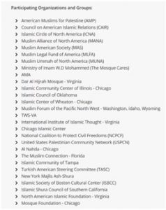 Due to the strange absence of coverage by U.S. media outlets, Congressional and national security leadership, as well as the American public at large, were completely oblivious to the fact that twenty-eight organizations from the across the country participated in the White House protest, which included a substantial effort to bus hundreds of protesters in from around the country including from Milwaukee, WI, Chicago, IL, St. Louis, MO, Tampa, FL, New Jersey, New York, Philadelphia, PA, Maryland, Virginia, and Washington, DC. Far-left groups like Code Pink and interfaith entities associated with the Brotherhood front group, Islamic Society of North America’s “Shoulder to Shoulder” program, also stood in solidarity with the listed Islamic organizations and groups generally associated with the domestic Muslim Brotherhood.