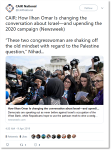[27]Twitter Account, CAIR National, 9 April 2019 https://twitter.com/CAIRNational/status/1115579085412081664