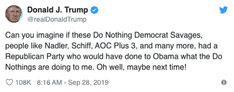 On Saturday, Rep. Alexandria Ocasio-Cortez tweeted that President Trump’s criticism of Representative Adam Schiff was anti-Semitic. She accused him of “engaging in deliberate, atrocious, targeted anti-Semitism,” linking an opinion piece connecting Trump’s rhetoric to that of neo-Nazis. The author of this op-ed, Mehdi Hasan, uses a September tweet from Trump to validate this claim.