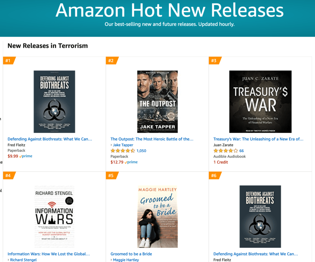 Defending Against Biothreats, the Center for Security Policy’s newest book, is #1 on Amazon’s list of new releases about terrorism.