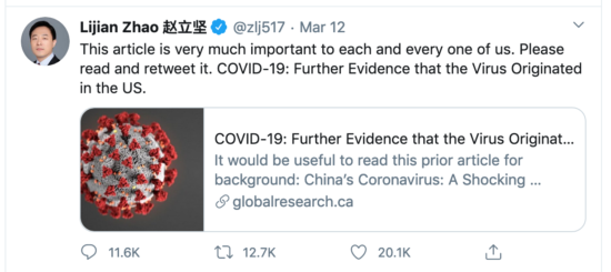 - [Note: As this timeline shows, the deflection theme began in early March by anti-Trump media (Bloomberg, Guardian) and then openly by the CCP.]