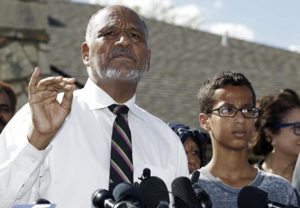 Under the circumstances and in accordance with protocols adopted in Irving – and in school districts across America to protect students and faculty from the sorts of attacks that have resulted in mass murders in several instances, Ahmed was taken into custody. The photograph of him in handcuffs that has gone viral, however, was not taken as he was escorted from the high school. Rather, it was staged after his father insisted at the police station that the cuffs remain on so his sister could take the picture.